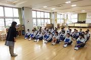 〇臼井直美副園長先生に、幼稚園の教育課程(教科)や「保育実習」への心構え、諸注意のお話しをいただき、その後、園児との交流をしました。生徒たちは事前に「家庭科」の授業の中でどんな遊びをするのか考えていましたが、実践できたでしょうか?