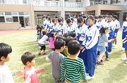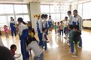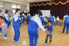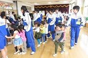 ***だんだんと園児たちとの関係作りもできてきて、2時間目にはニコニコ笑顔で、楽しい園児との関わりができていました。少子化の中で、4組の生徒たちには良い経験と実習になったと思います。