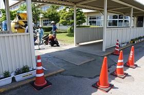 更に、1年生昇降口のたたきには、施工業者の配慮でゴムシートでの“仮設通路”が設定されました。