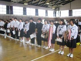 今大会を振り返ると、日頃の練習の成果を発揮し満足いく結果を残せた部と緊張してしまい十分に力が発揮できなかったり、大会直前にアクシデントにより主力選手が怪我をしてしまった部があったりと、試合を振り返ってみると、部ごとに課題がつかめたものと思います。3年生にとっては、中学校生活の締めくくりとなる夏の総体に向けてさらに鍛えて、十分力を発揮して欲しいと願っています。