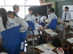 グループ学習での活動や全体での発表の場でも、自分の考えをしっかりと伝えようとする生徒の姿と授業に真剣に取り組む生徒の様子が見られました。