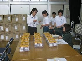 検査前の生徒の表情からは、若干緊張の様子が伺えましたが、保健衛生事業団の職員の方が、少しでも緊張がほぐれるように優しく血圧検査や採血を行ってくださっていました。