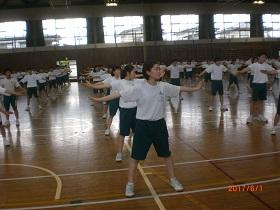 昨日からの本格的な練習開始ということで、今日の総合練習は厳しい条件の中でしたが、午前中の練習で開会式や閉会式の流れの確認を行った後、各競技種目・演技種目の練習を行いました。午後には応援練習も行いました。更に、放課後には応援団のメンバーは下校時刻いっぱいを使い、応援の練習に取り組んでいました。生徒たちの体力と気力には頭が下がる思いがしました。