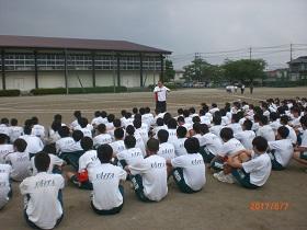 また、最後には5年後に予定されている栃木国体に向けて、本校体操競技部が県中体連等から競技力向上の拠点校としての指定を受けたことを紹介し、矢板中学校体操競技部を称えるとともに、更なる活躍を期待することを話しました。