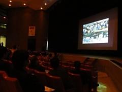 式後の記念事業では、「スライドショウー」が行われました。3校の運動会や修学旅行の写真が流れ、中学3年次担任からのビデオレターが紹介されました。成人者たちは、昔を思い出しながら語り合っていました。