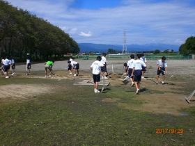 また、校庭や第2グランドの水たまりや軟弱な箇所に山砂が入りました。生徒の手でコース整備も行っています。