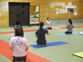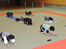 10月3日(火)18時00分から、本校武道場にてPTA保健厚生部主催の健康増進企画の教養講座「yoga~心と体のリラックス」が開かれました。11名の参加で、講師の木村賢子先生の指導のもと、約1時間の「ヨガ」の実習を行いました。