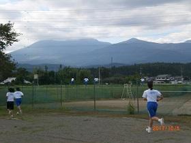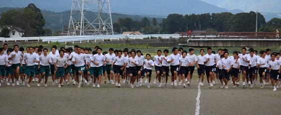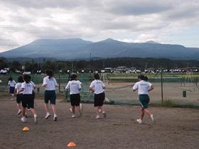 秋の爽やかな青空の下、高原山を仰ぎ見ながら体育の授業で練習を積んでいるところです。中庭も持久走コースになっていますが、コース脇のキンモクセイの香りが生徒の頑張りを応援してくれています。