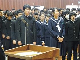 最後に、生徒会長が代表して交通安全への誓いとお礼の言葉を述べ終了しました。