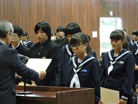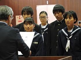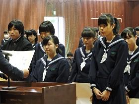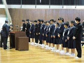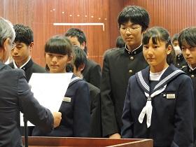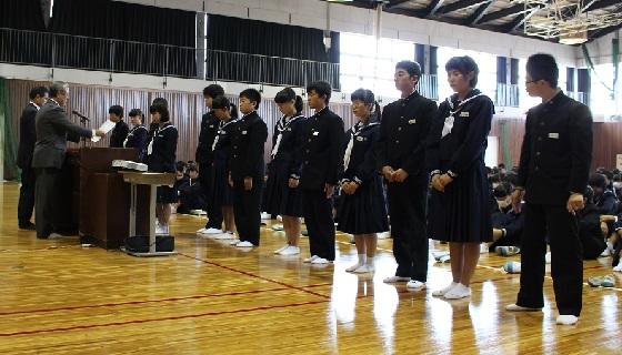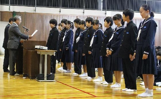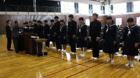 そして、最後には、先日行われた校内書道展や地区音楽祭、関東大会・地区新人大会等での活躍を讃えての表彰と賞状伝達を行いました。