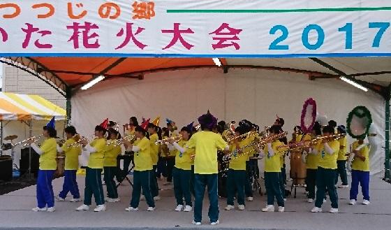 一昨日から雨模様の天気が続き、開催が心配されておりましたが、午後になると雲が切れて高原山も見えるようになってきました。夕方には、星空も見え最高の花火大会日和になりました。15時からの第1部「ファミリータイム」では、本校吹奏楽部も生涯学習館前の特設ステージで演奏を行いました。約20分間の演奏時間では、ハロウィンを意識してかぼちゃカラーの黄色のTシャツと3学年カラー(緑色)のジャージ姿で演奏を行い、会場の皆さんから多くの拍手をいただきました。