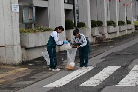 花火大会の翌日(15日)の早朝7時から、「花火大会」会場周辺のゴミ拾いボランティア活動に生徒204名が参加し清掃活動に取り組みました。約1時間、割り当てられた箇所のゴミ拾いに一生懸命取り組む姿が見られました。