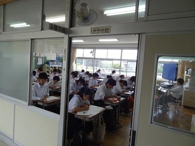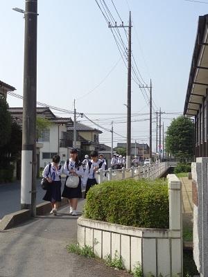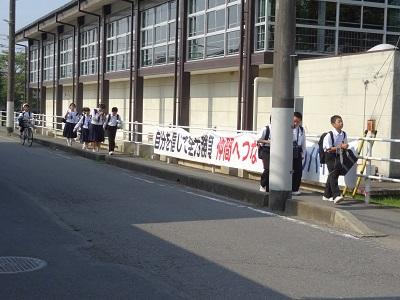 3年生は昨日から実力テストのため早めに登校しているので、この時間は1・2年生だけですが、暑いにもかかわらずみんな元気に登校です!