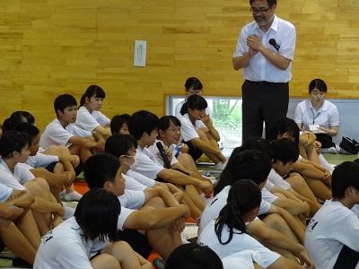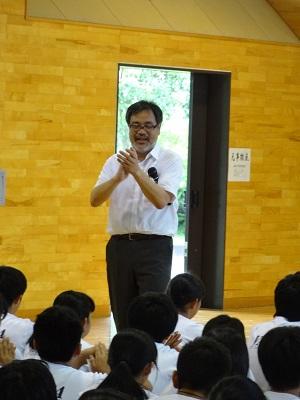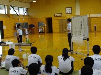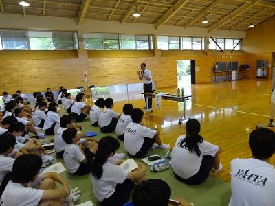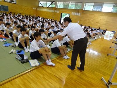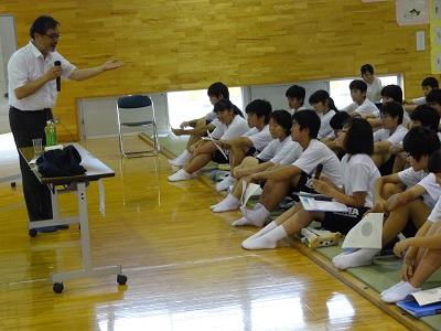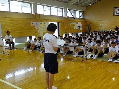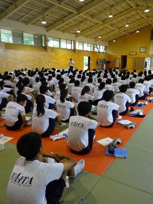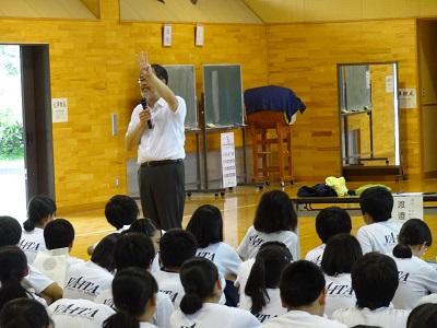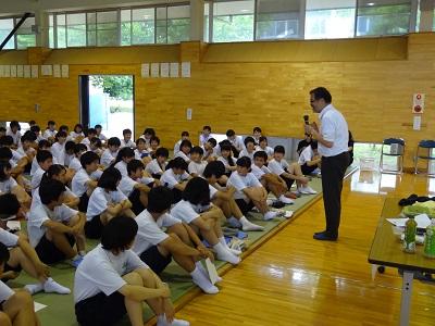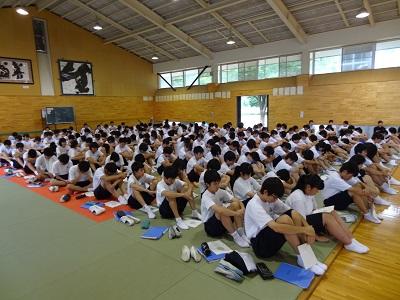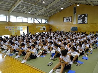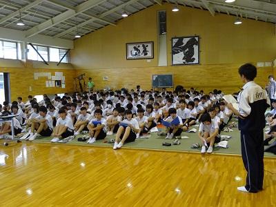 うれしい気持ち、楽しい気持ち、悲しい気持ち、いらいらする気持ち、全部自分なので、封じ込めるのではなく、「それも自分なんだ」と受け止めようという内容で、その方法も教えていただきました。子どもたちは、武道場の中で蒸し風呂状態にもかかわらず、熱心に話を聞いていました(^_^)