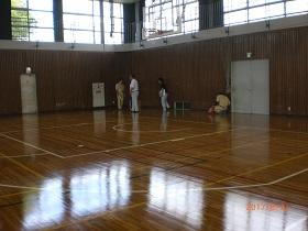 8月31日(木)13時30分より、体育館において教育委員会の立会のもと体育館床改修工事終了の点検と引き渡しが行われました。