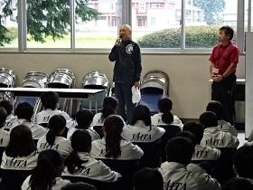 今日の5校時には、自衛隊の体験学習担当の方が見え、キャリアスタートウィークに向けて事前の打合せを行いました。自己紹介を行った後、当日の服装、持ち物、体験内容等について説明を受けました。真剣な生徒たちの表情からは、体験学習に向けての期待感が感じられました。