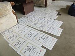 写真5,6枚目・・・今日の午前中、時間ができた(とれた)ので、地区と県総体の入賞生徒の賞状書きをしました。約2時間で50枚の賞状を心を込めて書きました。写真のように校長室南面が賞状で、歩くスペースもないくらいです。まだ、100枚残っていますのでお盆前には書き上げたいと思います。「150枚の賞状書き」私には初めての貴重な体験になります。