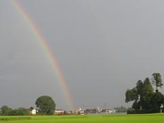 写真3、4、5枚目・・・17時40分頃学校を出て、喜連川の家に帰っていく間に、綺麗な「虹」を3箇所で見ることができました。 1回目は片岡へ向かうところ(写真3枚目)。2回目は喜連川工業団地西側(写真4枚目)。3回目は荒川沿いで(写真5枚目)。 同じ「虹」だのだと思いますが、形も大きさも違って見えて、得した気分でした。