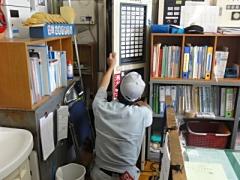 <火災報知器の点検実施>先週金曜日の落雷の影響で、火災報知器の点検に業者が入っています。「火災報知器連動操作盤」と各教室、特別教室等の煙探知機等の連動確認を終日、行ってくれています。 故障箇所については、早急に対応したいと思います。