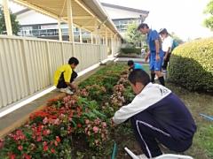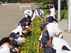 <校長室コラム「花壇の除草ブランティアを」>昨日、「花壇の草取りしないといけないですね。」と小川教頭と話していたところ、今朝、野球部とサッカー部が練習前に草取りをしてくれていました。両部員の行動に感謝するとともに、どちらの顧問も自ら、除草していました。「率先垂範」の範を示してくれていて、うれしい姿でした。 私を含めた本校職員7名は終日、塩谷庁舎で「県教育課程研究集会」にそれぞれの部会に参加しました。平成24年度から新しい「学習指導要領」が完全実施されたことから、校長を服務教員が5年間に1回参加することになっています。