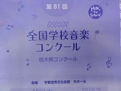 明日は、ンHK全国学校音楽コンクール栃木県大会が宇都宮市文化会館で開催されます。本校合唱部が参加します。私も応援に行きたいと考えています。練習の成果を十分に発揮してほしいと期待しています。