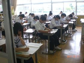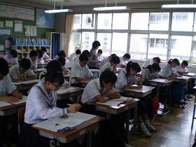 今日は3学年登校日で、生徒は実力テストに取り組んでいます。また、テスト前には夏休みの宿題の提出などもあり、久しぶりの登校ということですが、忙しい日程の中頑張っていました。