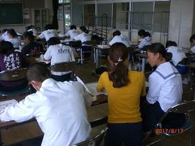 8月17日の3年登校日の後の「夏休み補習講座(サマースクール)」には、市教育委員会の小野指導主事にも協力していただき、“特別講座”を実施しました。自己啓発を目的とした内容でしたが、参加生徒一人一人が意欲的に取り組む様子が見られました。