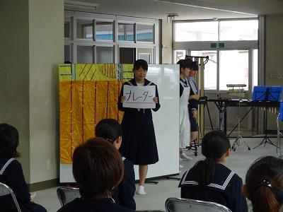 趣向を凝らした楽器&自己紹介、「シンデレラ」をパロディーにした「夢デレラ」(3年生による寸劇)、3年生の伴奏に乗って踊る2年生のダンス どれもとても楽しかったです(^_^)/