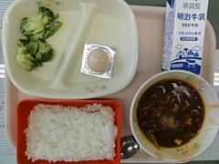 <給食コーナー>今日の献立は、ご飯、牛乳、ハヤシシチュー、グリーンサラダ、型抜きレアチーズでした。 カレーかな?と思いきや、何となく味が甘いと感じていたところ、献立を見ると「ハヤシシチュー」となっていました。 私は何故か、「ハヤシライス」は苦手意識を持っているのですが、今日のハヤシシチューは全部クリア(残さず食べきる)することができました。