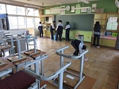 今日は、どのクラスも、念入りに清掃をしていました。放課後は、教室の「ワックスがけ」をしていました。明日は、綺麗なピカピカに光る教室で、「修了式」を迎えます。