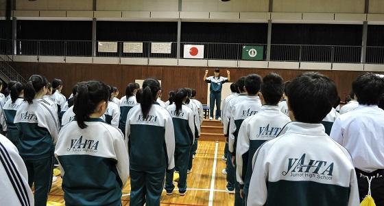 3月6日(火)の放課後、明日に控えた「県立高一般選抜学力検査」受検の事前指導を行いました。当日の日程や心構え等について、進路指導主事や学年主任から説明と確認を行いました。学校長からは“「あきらめたらそこで試合終了ですよ。」by安西先生”の言葉で、最後まであきらめないことなどの話がありました。