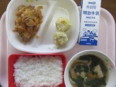 ***食育まめ知識「牛乳」・・・・・・「牛乳」には、カルシウムやタンパク質、必須アミノ酸などの栄養成分がバランスよく豊富に含まれています。 カルシウムは、骨や血液、細胞に含まれ生命維持に関わる大切な働きをしています。特に、骨は中学生の時期に急激に密度が増します。「骨密度」がしっかり高まっていないと、骨はあっても中味がスカスカで、もろい状態になってしまいます。