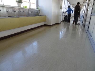 第1棟2階の廊下の床を、この3連休中に業者に来てもらいきれいにすることができました!