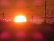 〇何年ぶりでしょうか? 今朝、「初日の出」を見ることができました。東の空が微かにオレンジ色になり、次第にその色が濃くなっていきました(写真のとおり)。 太陽の上端が地平線に見え始めました。 数分で、太陽は半分ぐらいまではゆっくり上がっていきますが、半分、頭を出したやいなや、一瞬に上がり「まん丸太陽」になりました。 こんなにゆっくり、のんびりと「初日の出」を観察したのは初めての体験でした。