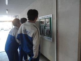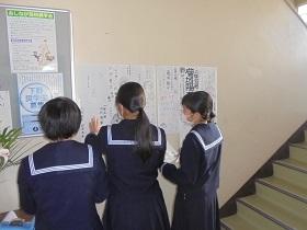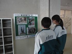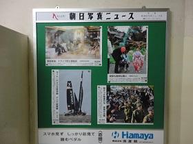 この度「浜屋組」のご厚意で、朝日新聞社の報道カメラマンが撮影した「写真ニュース」を、3年生の昇降口脇に掲示しました。
