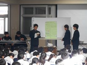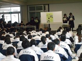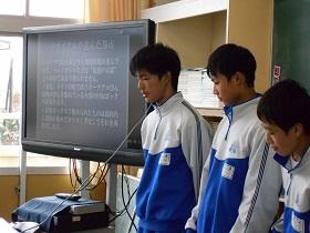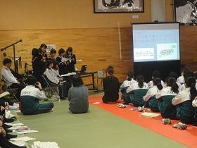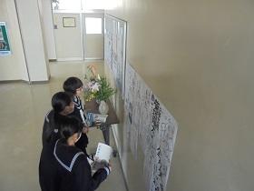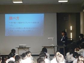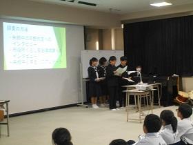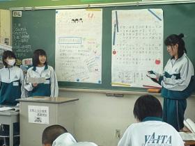 11月24日(木)、5・6校時の2時間を使い、これまで調べてきたジャンル別の発表会を行いました。朝からの降雪で足元が悪い中でしたが、多くの保護者の方が見え生徒の発表に拍手を送って下さいました。
