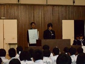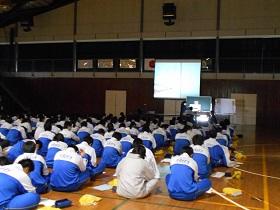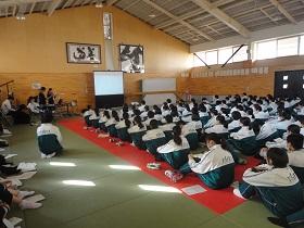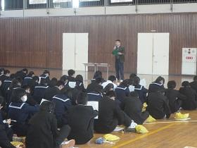 生徒たちも真剣に講話を聴き、有意義な時間を過ごすことができました。常に「相手の嫌がることはしない・させない」思いやりのある、温かい仲間づくりをしていくことを目指してほしいと思います。