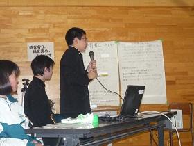 「学校で何が出来るか」を考えたところ、「あいさつの向上」と「メディアの使い方の改善」ということが出ました。具体的には、「あいさつ~笑顔で目を見て大きな声で~」「ノーメディアから生活リズムをつくる」などでした。