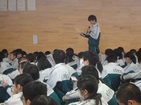 12月8日(木)、5・6校時の2時間を使い、先週の「学年発表会」に引き続き、各学年ごとに選出された「全体発表会」を行いました。