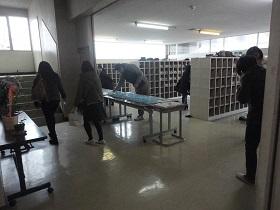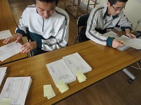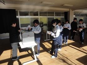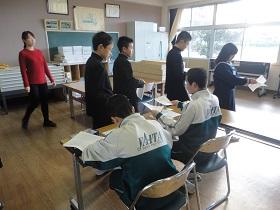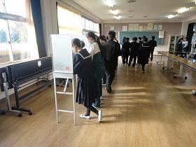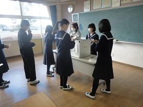 放課後には、選挙管理委員が研修室に投票所の準備を行う様子が見られました。