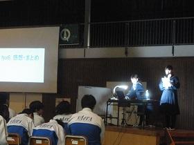 実行委員の生徒を中心に生徒たちが主体的に進行し、聞く側もワークシートに感想をまとめながら、真剣に聞いている様子が伺えました。