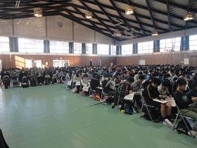 今回は、学年ごとに体育館や武道場・多目的室に集まり実行委員の生徒を中心に主体的に進めていました。