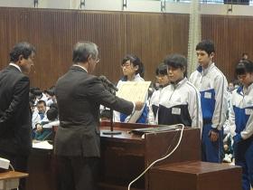 36回目を迎える平成28年度は、総応募数33,599編の中から、最優秀賞 3名、優秀賞 4名、優良賞 25名を決定し、表彰式が12月3日(土)壬生町城址公園ホールにて行われました。本校からも受賞者が1名おりましたが、本校も人権作文コンテストへの協力と中学生の人権意識の高揚に尽力したことが認められ、感謝状を頂きました。