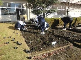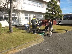28日には、吹奏楽部が学内コンサートを行い2016年の部活動納めを行いましたが、他の部も練習場や部室の大掃除などを行い、新年を迎える準備を行っていました。ソフトボール部は、顧問教師とともに、花壇の除草やパンジーの手入れを行ってくれていました。花いっぱい運動への協力に感謝いたします。