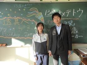 また、教室を巡回していると、朝の会に担任の先生やクラスメイトの誕生日を祝福する黒板アート?がありました。おめでとうございます。
