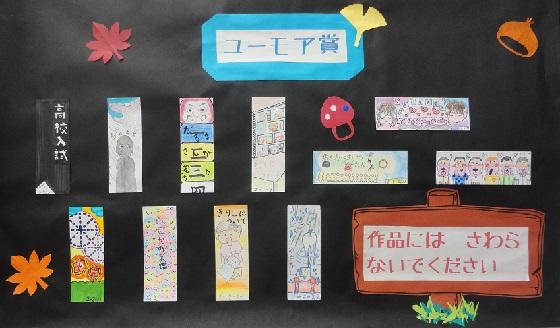 なお、最優秀賞作品4点については、後日、印刷業者に依頼して立派な『しおり』として製作し、全校生に配布いたします。
