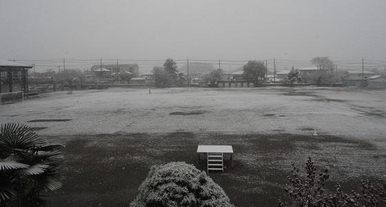 【今朝の中庭の様子】 【一昨日の校庭の様子】