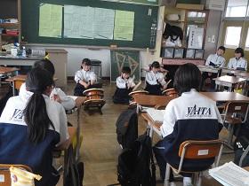 聞く側も、ワークシートに感想をまとめるとともに、自分の感想をしっかりと述べる様子も伺えました。