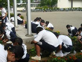「暑さに負けずグリーンボランティア活動」 投稿日時 : 2017/06/30 矢板中学校管理者 カテゴリ: 6月29日(木)の放課後には、緑化委員会の呼びかけで花壇をきれいにする活動(グリーンボランティア)が行われました。梅雨の中休みで蒸し暑い中でしたが、校舎周りの花壇の除草活動を行いました。各学年の分担場所に分かれての作業を行いましたが、子ども達は、暑さや雑草に負けない意気ごみで、グリーンボランティア活動を行いました。また、3年2組のベランダで栽培している「二十日大根」の収穫も行われ、おすそ分けに与りました。これも、ある意味グリーンボランティア?でしょうか・・・。