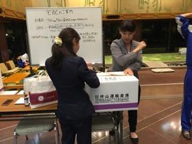 ロビーで、到着の確認をしてからJTB職員から、荷物の輸送の説明を受けます。